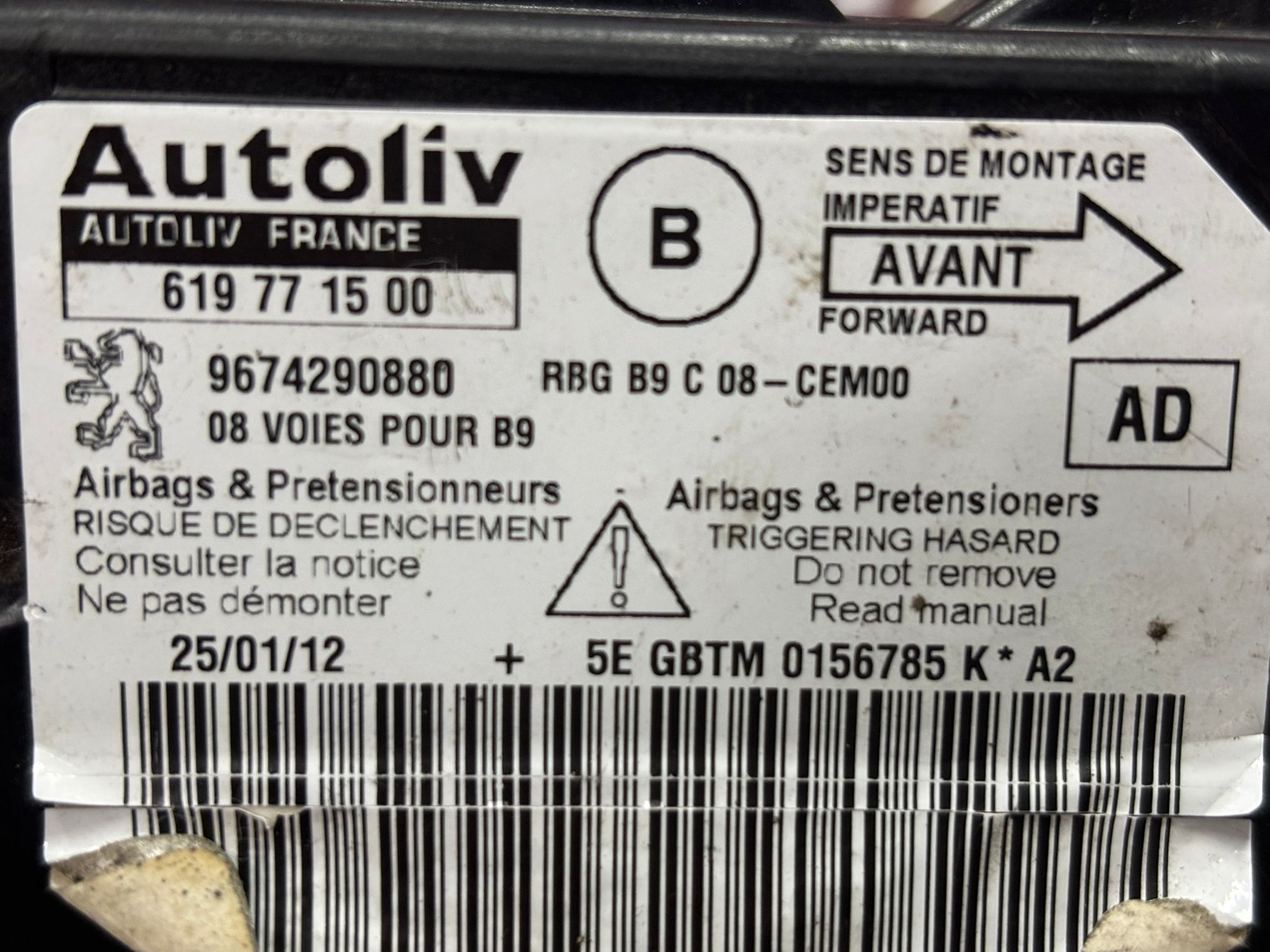 Vendemos Centralita Airbag Grupo PSA Ref: 9674290880